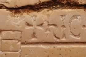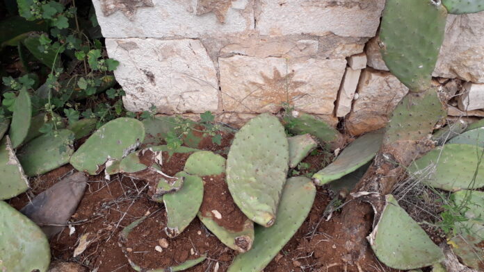 La parte centrale e superiore della costruzione rurale rinvenuta nel maggio 2020 in agro di Mola. Si nota la perfetta analogia con le figure sacre stilizzate già presenti nel tempietto di San Materno, andato distrutto successivamente alla segnalazione del dott. Sebastiano Tagarelli, studioso nojano, nel 1969.